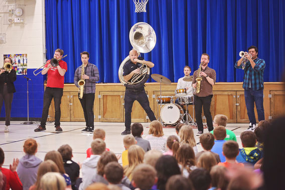 NCSD #1 Elementary Schools, presenting educational programming and inspiring students to participate in music programs in their schools. This is an annual program and past groups have included Guerrilla Fanfare, The Wiyos, Johnny Sketch and the Dirty Notes, and Sybarite 5.